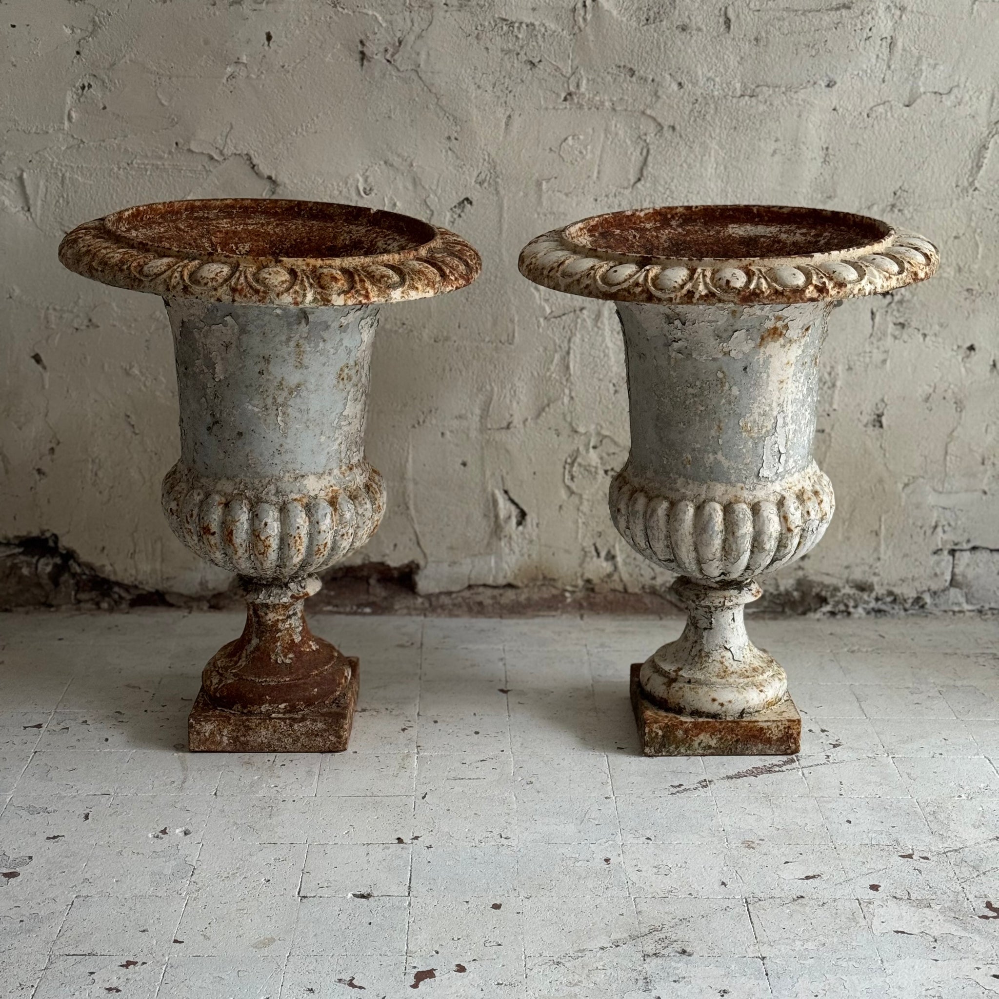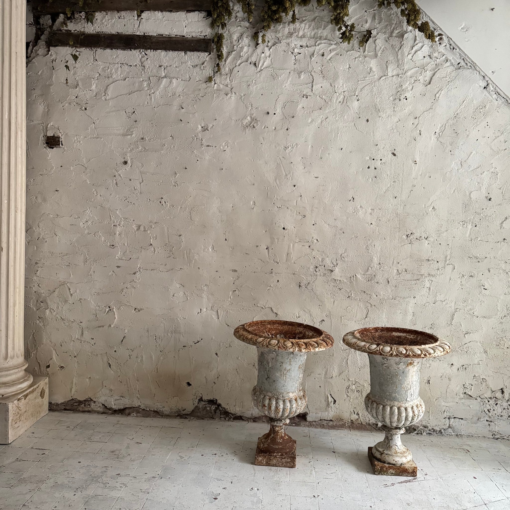 Pair Of Large Early 19th Century French Cast Iron Urns