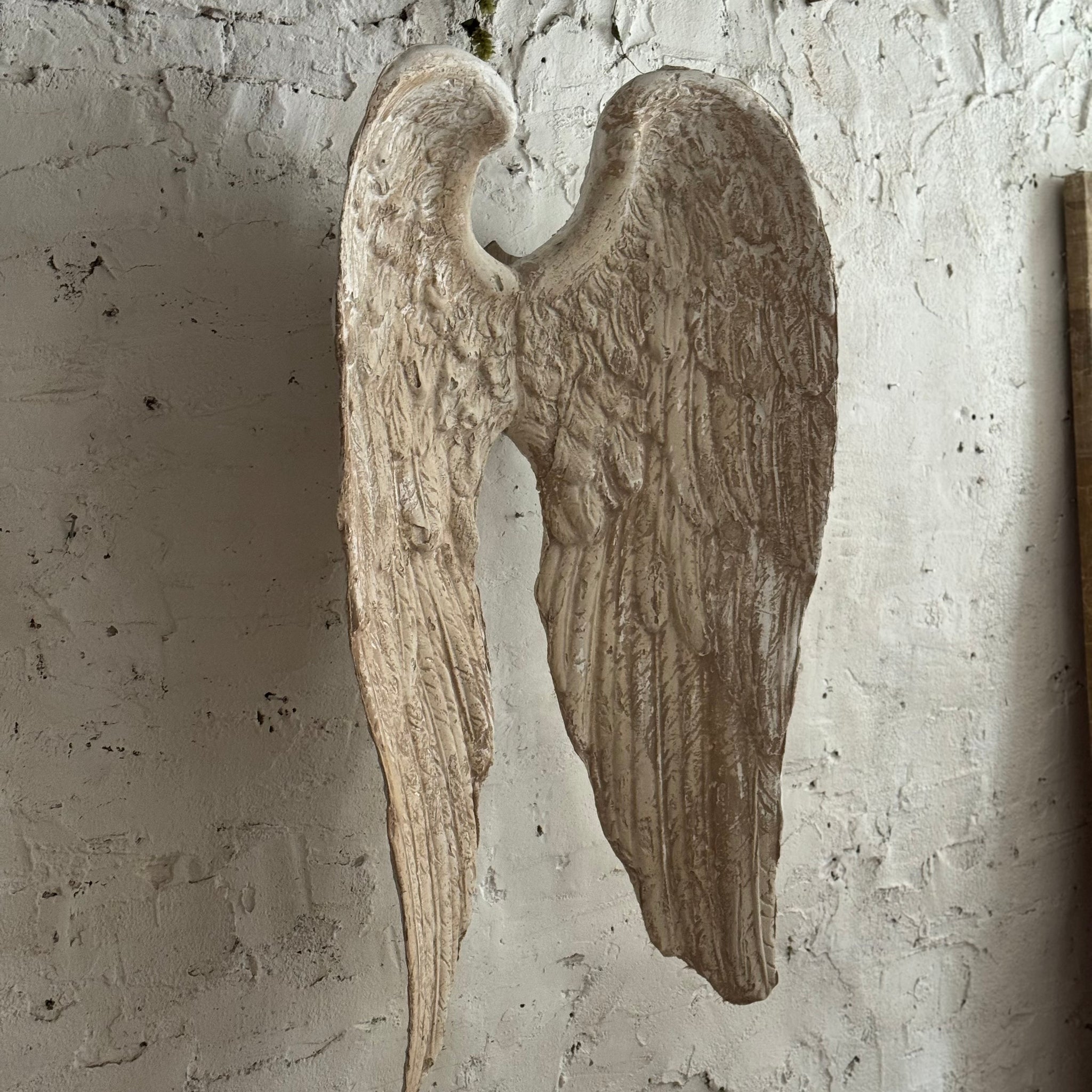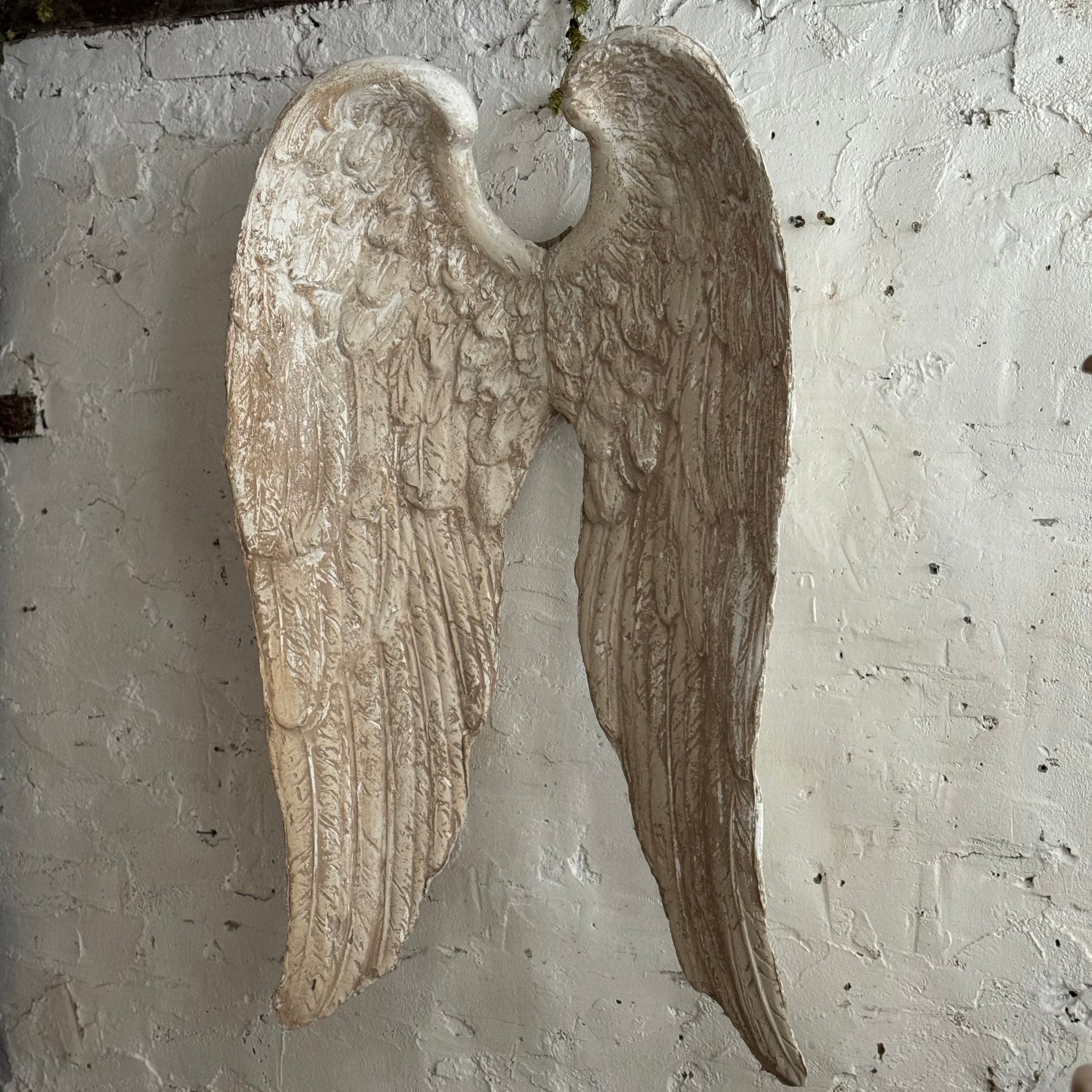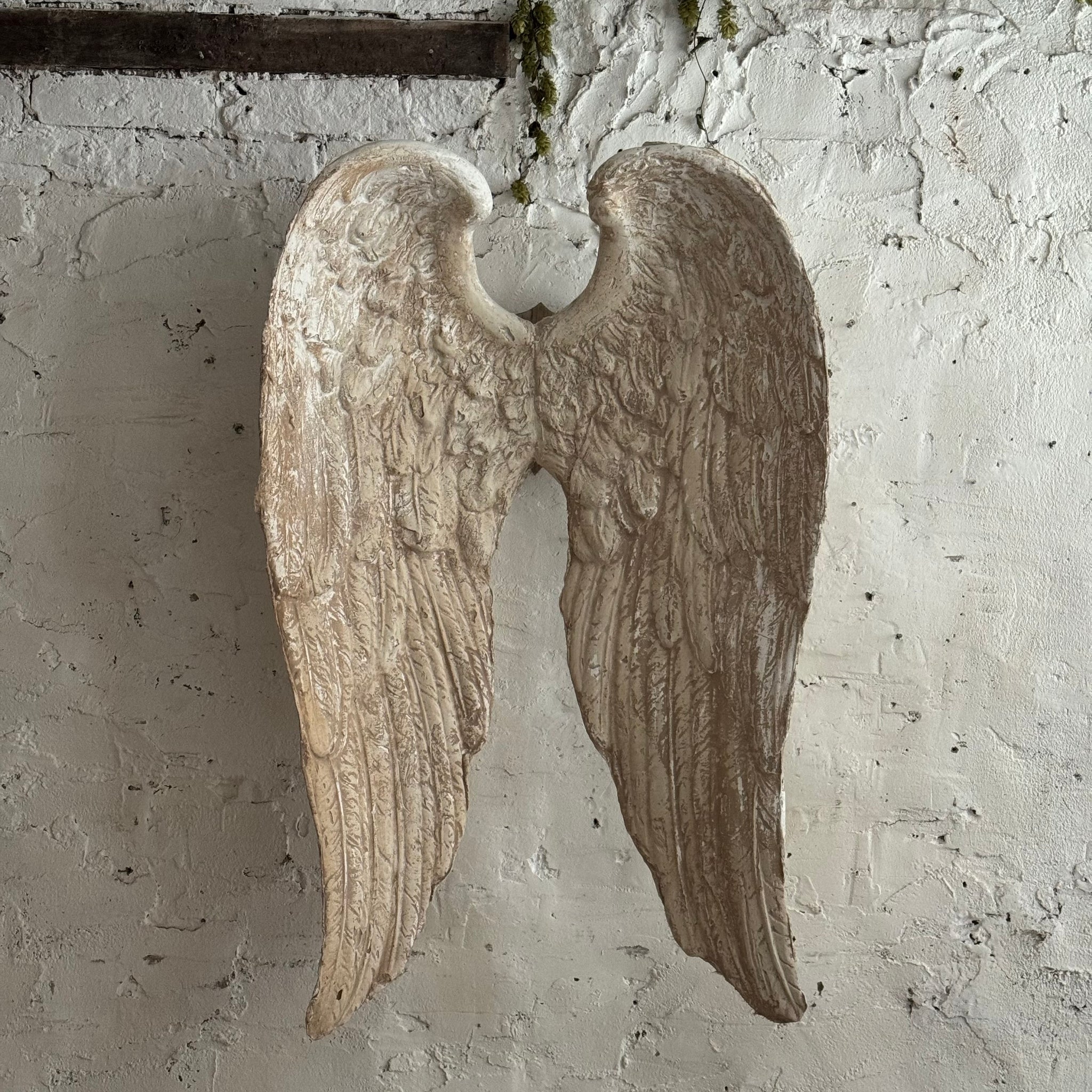 Made from plaster with a wooden shield to back that can be wall mounted.